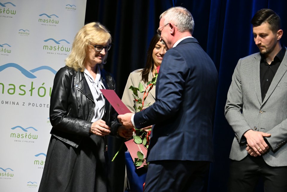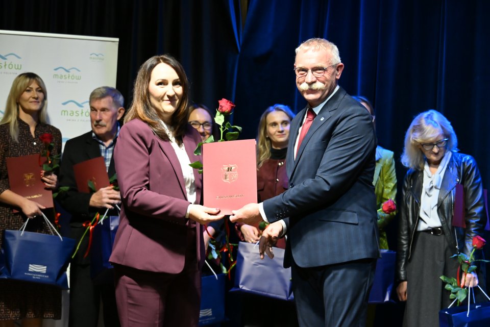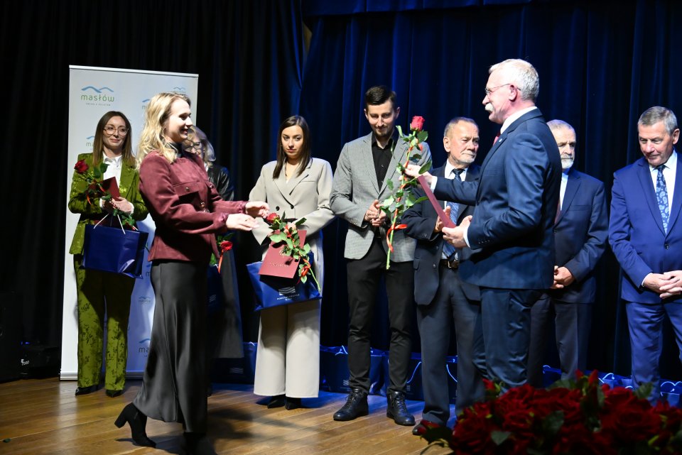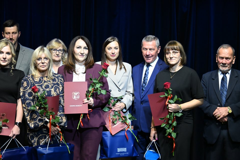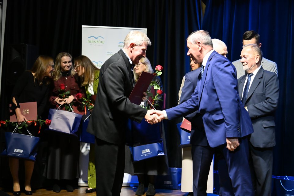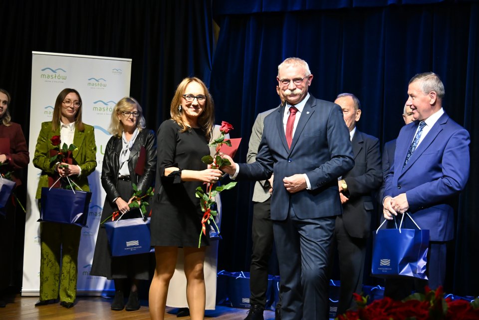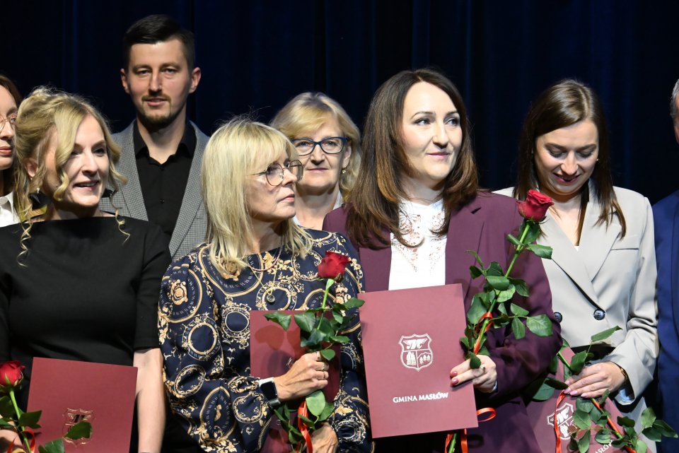 Dyrektorzy szkół z terenu gminy Masłów oraz nauczyciele wyróżniający się swoją pracą w roku szkolnym 2024/2025 otrzymali Nagrody Wójta Gminy Masłów podczas uroczystych obchodów Dnia Edukacji Narodowej, które odbyły się w Centrum Edukacji i Kultury „Szklany Dom” w Ciekotach.