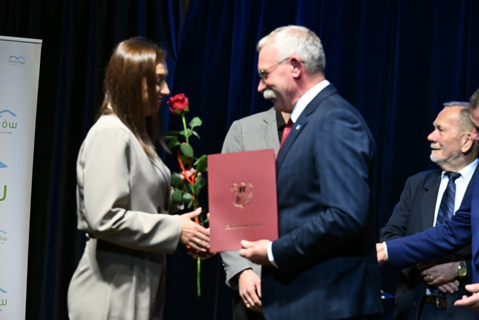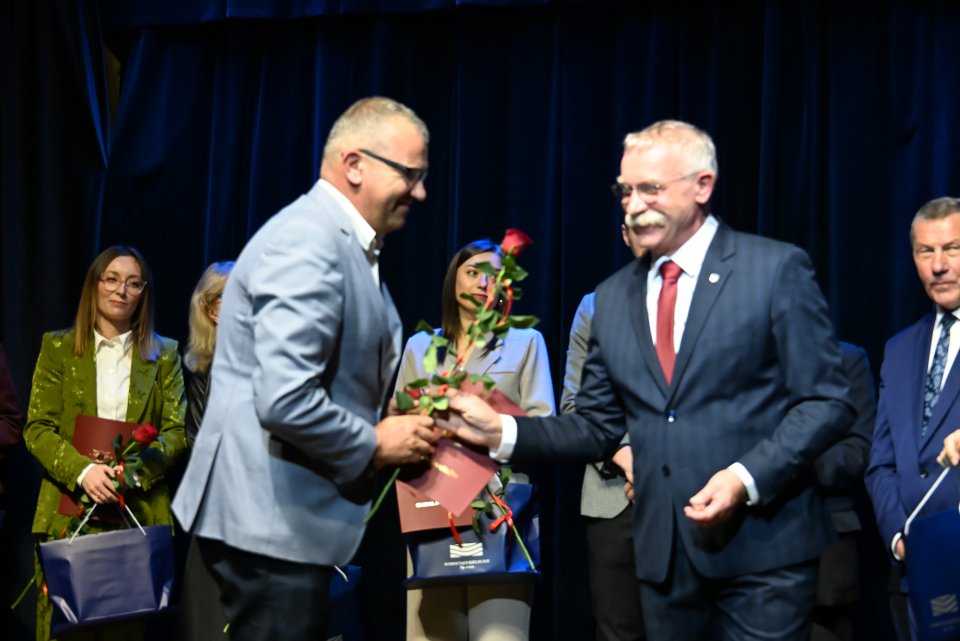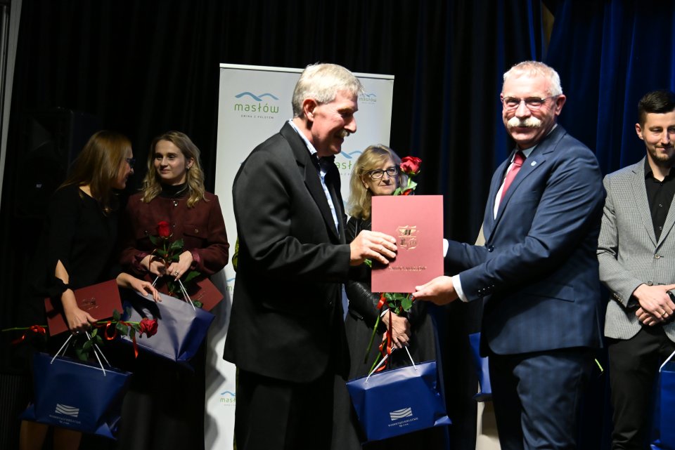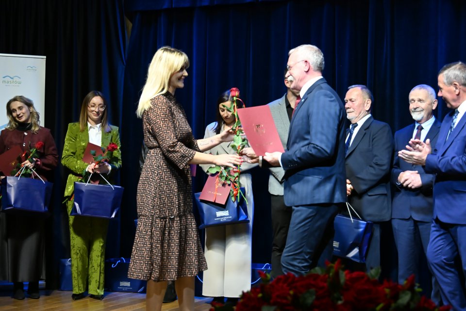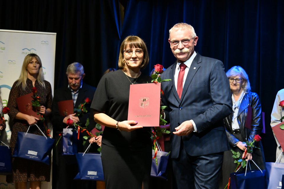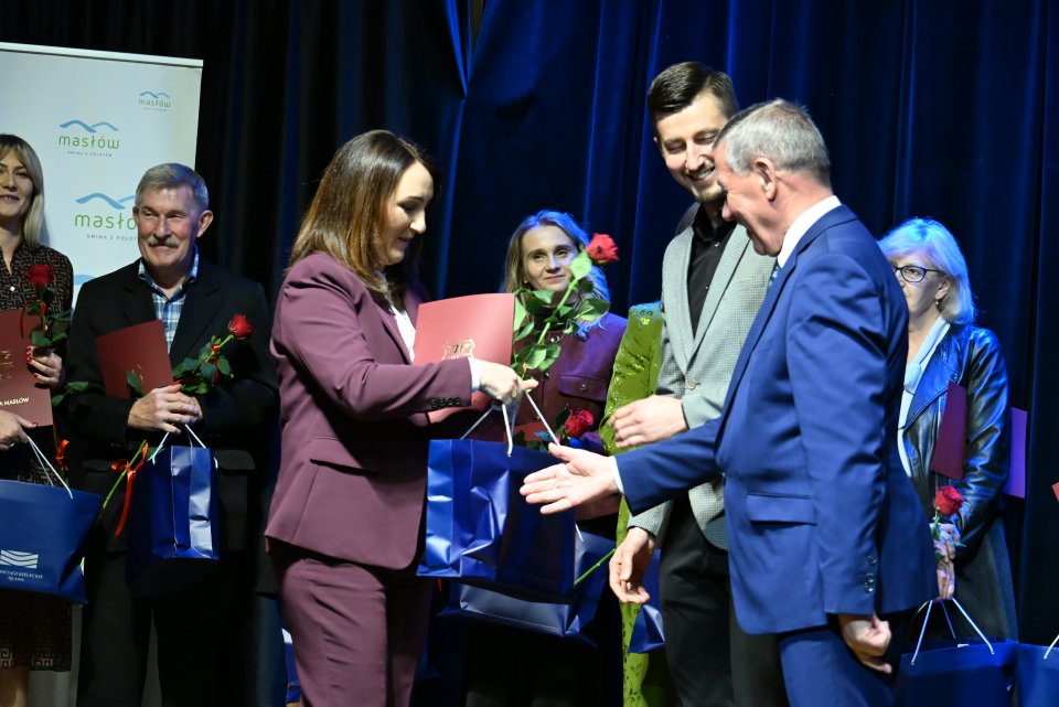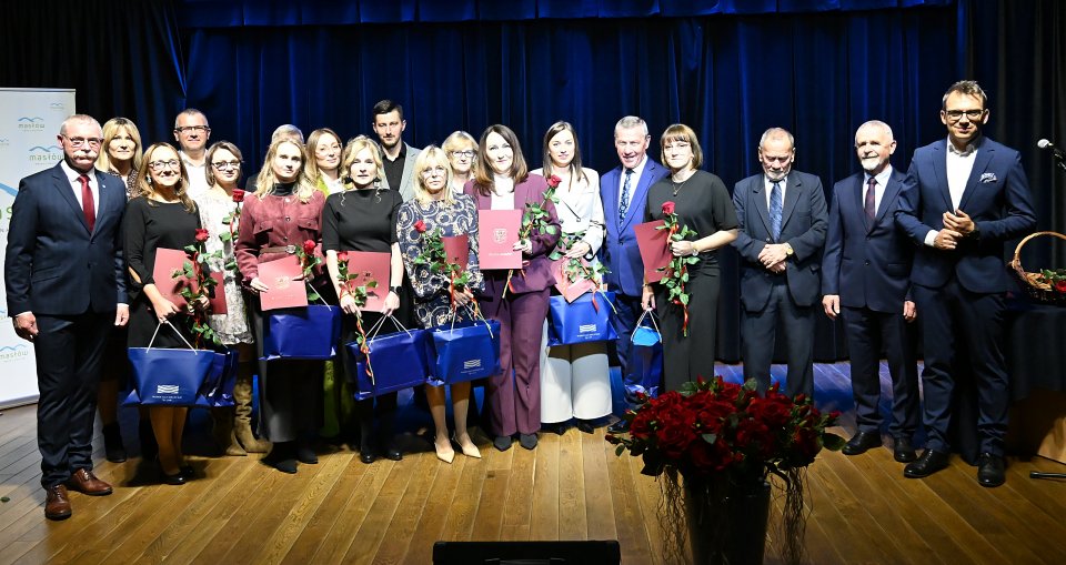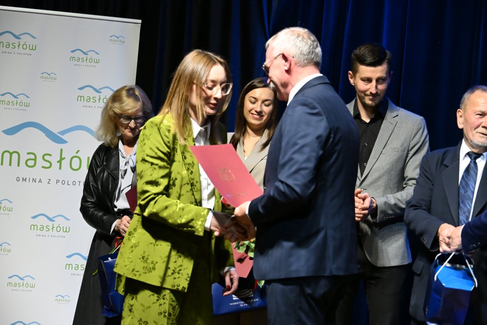 Dyrektorzy szkół z terenu gminy Masłów oraz nauczyciele wyróżniający się swoją pracą w roku szkolnym 2024/2025 otrzymali Nagrody Wójta Gminy Masłów podczas uroczystych obchodów Dnia Edukacji Narodowej, które odbyły się w Centrum Edukacji i Kultury „Szklany Dom” w Ciekotach.