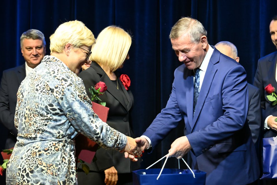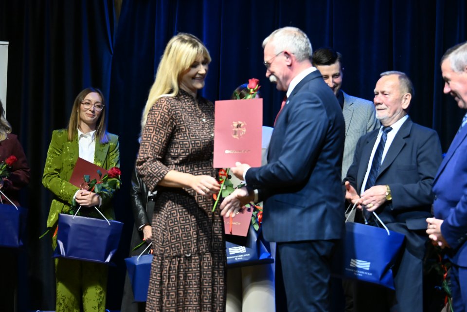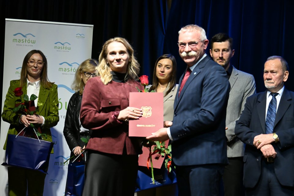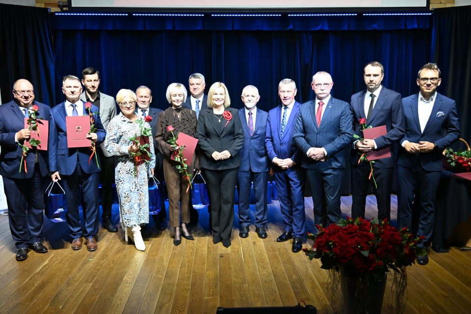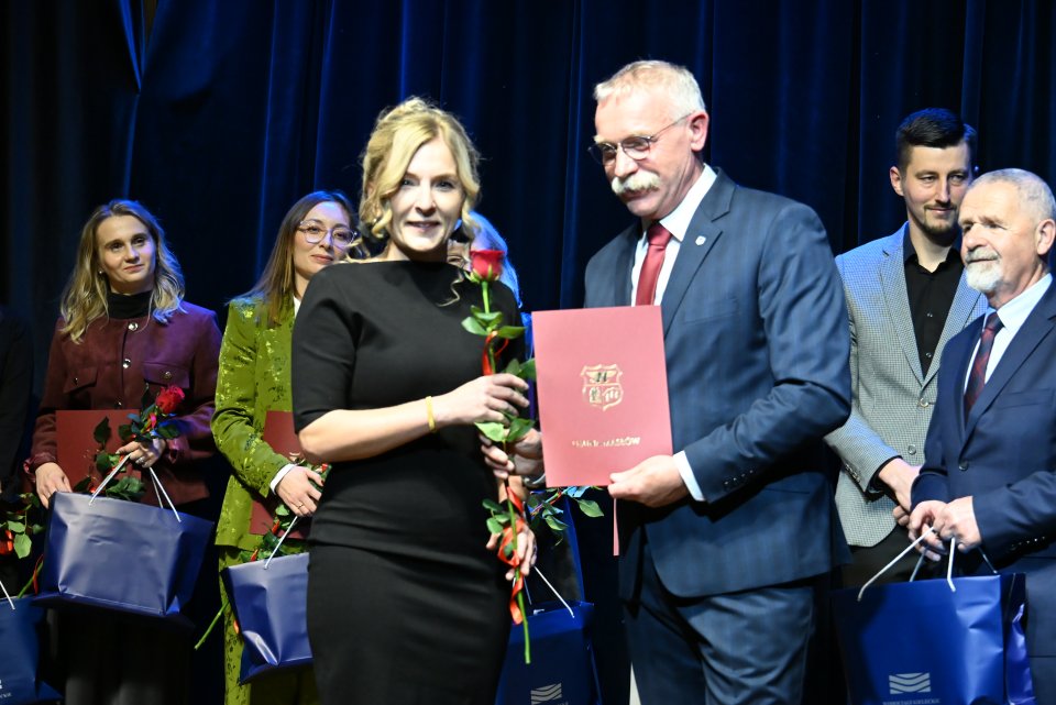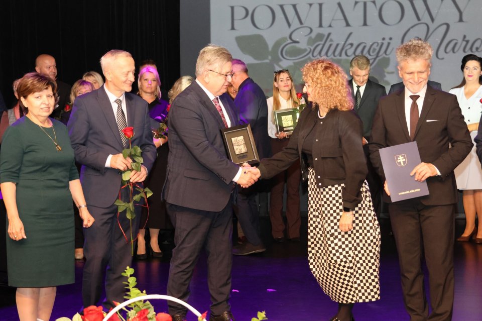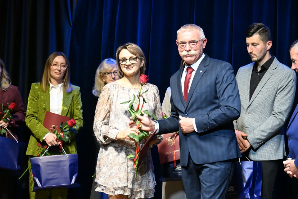 Dyrektorzy szkół z terenu gminy Masłów oraz nauczyciele wyróżniający się swoją pracą w roku szkolnym 2024/2025 otrzymali Nagrody Wójta Gminy Masłów podczas uroczystych obchodów Dnia Edukacji Narodowej, które odbyły się w Centrum Edukacji i Kultury „Szklany Dom” w Ciekotach.