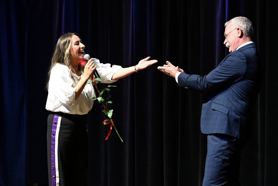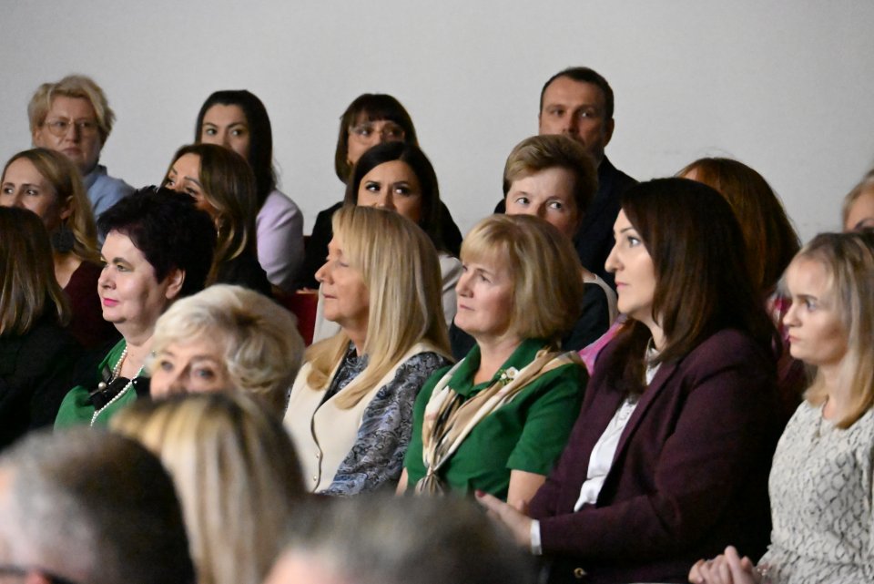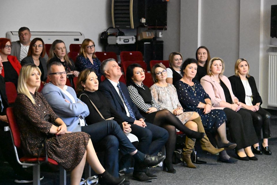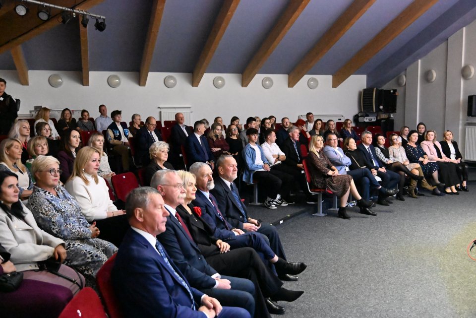 Na widowni „Szklanego Domu” zasiedli dyrektorzy i nauczyciele, pracownicy obsługi szkół i Centrum Usług Wspólnych w Woli Kopcowej pracujący na co dzień ze szkołami. Całość wydarzenia poprowadziła Anna Kowalczyk, kierownik Centrum Usług Wspólnych w Woli Kopcowej, która wraz ze swoim zespołem przygotowała gminne obchody Dnia Edukacji Narodowej.
